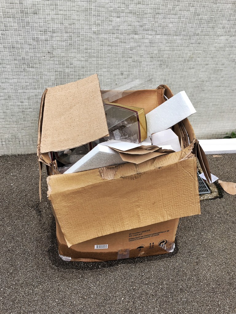 Эту коробку оставили, потому что в ней кроме картона есть пластик и пенопласт.